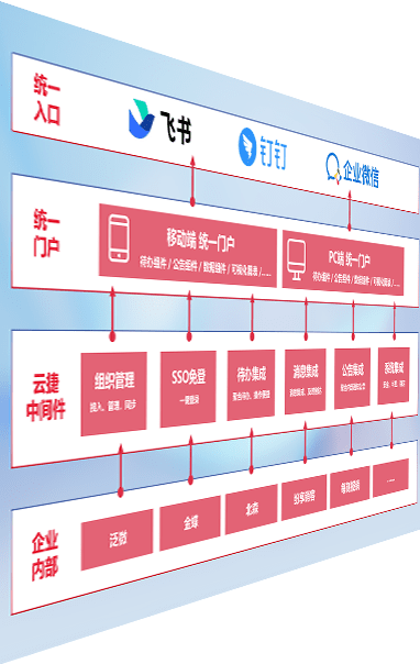 对协作平台提供支持服务,,支持企业应用与协作平台对接,,,包含组织同步、、、消息集成、、待办集成等。。。支持目前主流的协作平台:钉钉、、企微和飞书。。。。